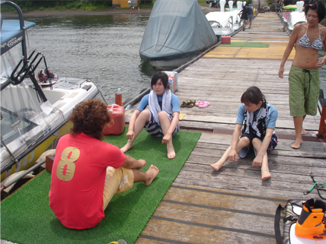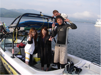 ウェイクボードとは水上スキーのようにボートに曳かれ、スノーボードのように