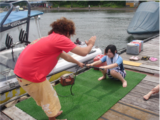 ウェイクボードは立ち上がるのに力はいりません!!